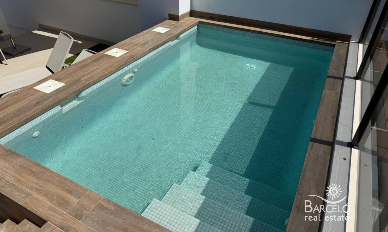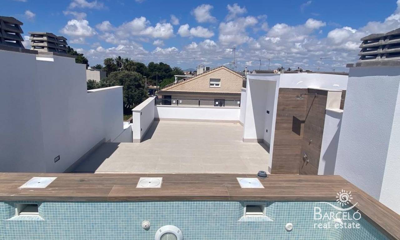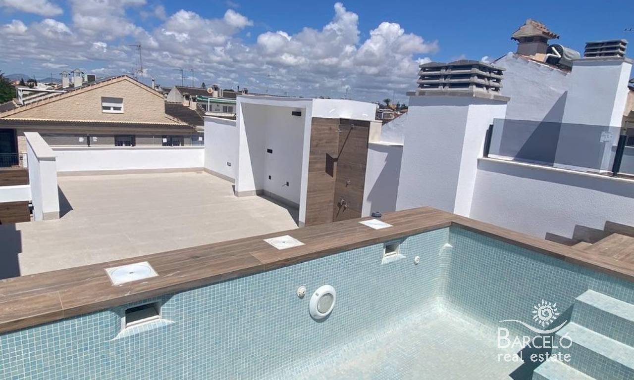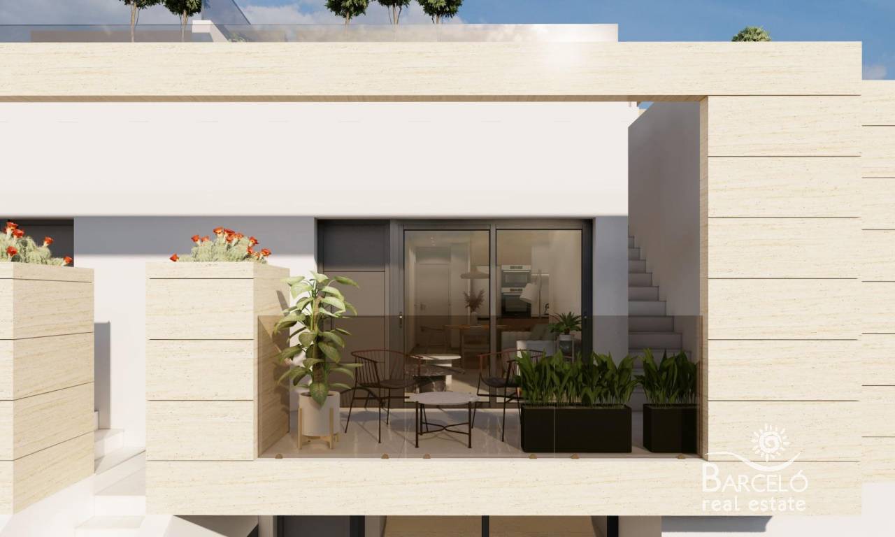 New Build Bungalows in San Pedro del Pinatar Modern Living Near the Beach Contemporary Coastal Homes in El Salero San Pedro del Pinatar Discover these stylish 12 new build bungalows located in El Salero, a charming residential area of San Pedro del Pinatar on the Costa Calida. This sought after location offers the perfect balance between coastal living and everyday convenience, with supermarkets, restaurants, cafes and essential services all within walking distance. San Pedro del Pinatar is well known for its natural mud baths, salt flats and relaxed Mediterranean lifestyle. With a welcoming community and a mild climate all year round, it is an ideal destination for both permanent living and holiday homes. Prime Location Close to the Mar Menor and Mediterranean Sea These properties are ideally located just 2 km from the beaches of Villa Nanitos on the Mar Menor and El Mojon on the Mediterranean Sea, both easily reachable within a 20 minute walk. The area is perfect for water sports enthusiasts, with nearby marinas, sailing clubs and coastal promenades. Modern Design and Functional Layouts The development offers modern bungalows with 2 bedrooms and 2 bathrooms, designed with open plan kitchens and bright living spaces that maximize natural light. Ground floor units feature spacious private terraces with the option to add a private swimming pool at an additional cost. Top floor properties include a private rooftop solarium with a swimming pool already included, providing the perfect space to relax and enjoy the Mediterranean sun. Each property also includes a private parking space. High Quality Finishes and Energy Efficiency These homes are built with high quality materials and modern specifications to ensure comfort and efficiency. Features include pre installation for ducted air conditioning, aerothermal system for hot water and electric shutters. Bathrooms come fully equipped with vanity units, mirrors, shower screens and underfloor heating. A complete LED lighting package is included both indoors and outdoors, enhancing the overall ambiance of the property. Excellent Connectivity and Nearby Amenities San Pedro del Pinatar offers excellent connections to key destinations. The Dos Mares shopping center is approximately 4 km away, while Murcia International Airport is around 35 km. Alicante Airport can be reached in approximately 75 km. Several golf courses and marinas are located within a short drive, making this an ideal location for leisure and recreation. Ideal Property for Investment or Year Round Living These new build bungalows combine modern design, a prime coastal location and high quality finishes, making them an excellent choice for investment, holiday use or permanent residence. Contact us today to receive more information or to arrange a viewing and secure your new home in San Pedro del Pinatar.