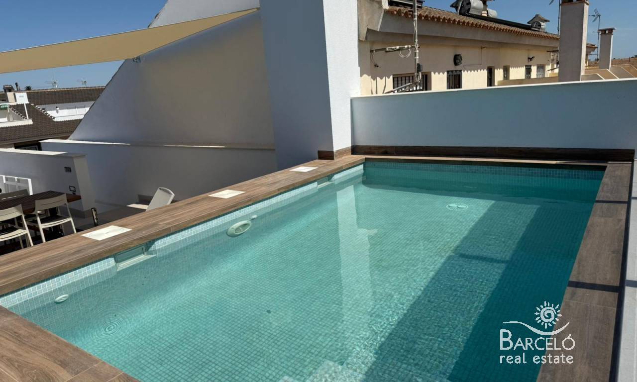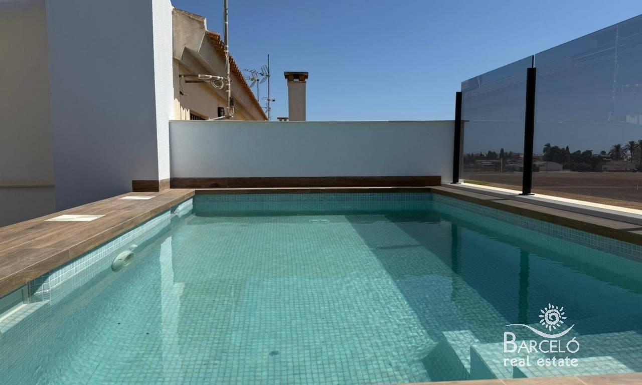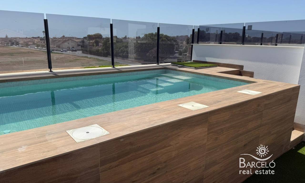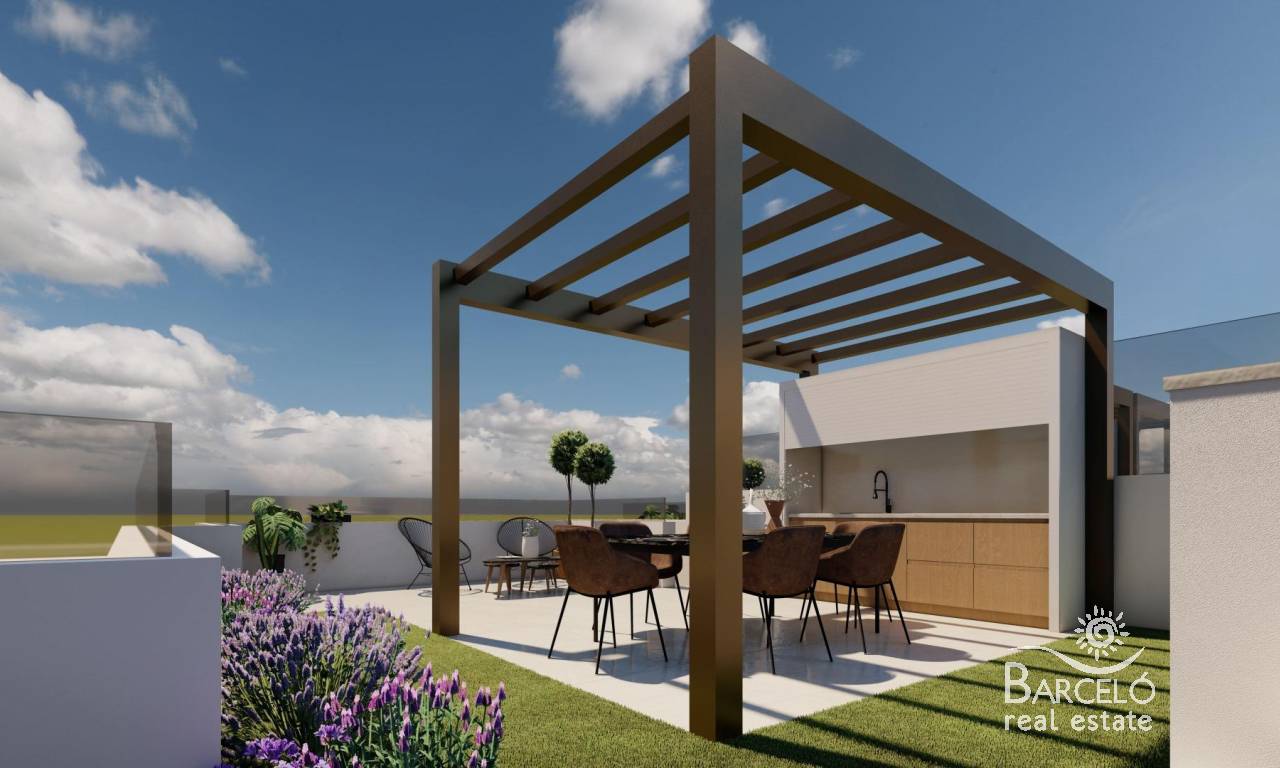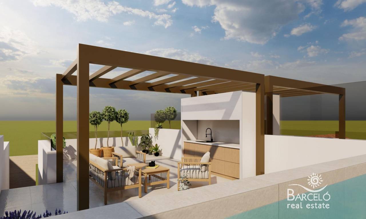 New Build Bungalows in San Pedro del Pinatar Modern Living Near the Beach Contemporary Coastal Homes in El Salero San Pedro del Pinatar Discover these stylish 12 new build bungalows located in El Salero, a charming residential area of San Pedro del Pinatar on the Costa Calida. This sought after location offers the perfect balance between coastal living and everyday convenience, with supermarkets, restaurants, cafes and essential services all within walking distance. San Pedro del Pinatar is well known for its natural mud baths, salt flats and relaxed Mediterranean lifestyle. With a welcoming community and a mild climate all year round, it is an ideal destination for both permanent living and holiday homes. Prime Location Close to the Mar Menor and Mediterranean Sea These properties are ideally located just 2 km from the beaches of Villa Nanitos on the Mar Menor and El Mojon on the Mediterranean Sea, both easily reachable within a 20 minute walk. The area is perfect for water sports enthusiasts, with nearby marinas, sailing clubs and coastal promenades. Modern Design and Functional Layouts The development offers modern bungalows with 2 bedrooms and 2 bathrooms, designed with open plan kitchens and bright living spaces that maximize natural light. Ground floor units feature spacious private terraces with the option to add a private swimming pool at an additional cost. Top floor properties include a private rooftop solarium with a swimming pool already included, providing the perfect space to relax and enjoy the Mediterranean sun. Each property also includes a private parking space. High Quality Finishes and Energy Efficiency These homes are built with high quality materials and modern specifications to ensure comfort and efficiency. Features include pre installation for ducted air conditioning, aerothermal system for hot water and electric shutters. Bathrooms come fully equipped with vanity units, mirrors, shower screens and underfloor heating. A complete LED lighting package is included both indoors and outdoors, enhancing the overall ambiance of the property. Excellent Connectivity and Nearby Amenities San Pedro del Pinatar offers excellent connections to key destinations. The Dos Mares shopping center is approximately 4 km away, while Murcia International Airport is around 35 km. Alicante Airport can be reached in approximately 75 km. Several golf courses and marinas are located within a short drive, making this an ideal location for leisure and recreation. Ideal Property for Investment or Year Round Living These new build bungalows combine modern design, a prime coastal location and high quality finishes, making them an excellent choice for investment, holiday use or permanent residence. Contact us today to receive more information or to arrange a viewing and secure your new home in San Pedro del Pinatar.