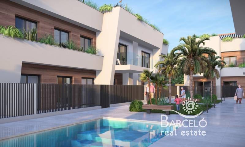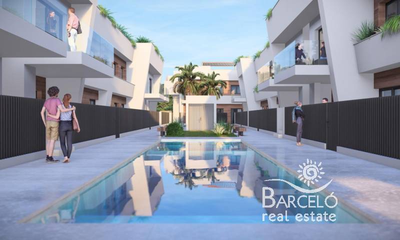 Residencial complex of 14 townhouses in Avileses, Murcia. Townhouses have different terraced areas and large solarium, allowing you to enjoy all hours of sunshine every day of the year, with private swimming pool and parking on the plot . Each property has 3 bedrooms and 2 bathrooms. The properties have been designed on three levels with a contemporary style and open planned concept, comprising a fully-fitted kitchen and lounge-dining room. The properties will meet the highest standards and will be equipped with: Private pool with shower. Kitchen completely furnished and equipped with Balay electrical appliances: ceramic hob, oven and microwave on top, extractor fan, integrated fridge and dishwasher. Fully fitted bathrooms with: suspended toilet, vanity unit, mirror and rainfall shower column. Lined wardrobes with drawers. Interior lighting in kitchen, living room, hallway and bathrooms with led spotlights. Wall integrated led spotlights at the garden and solarium. Pre-installation for air conditioning. The development is located in Avileses (Murcia), surrounded by all services and sports facilities, near several Golf Courses such as La Torre Golf and Hacienda Riquelme, plus being 20 minute drive to Murcia airport and 15 minute far from Mar Menor and Mediterranean beaches.